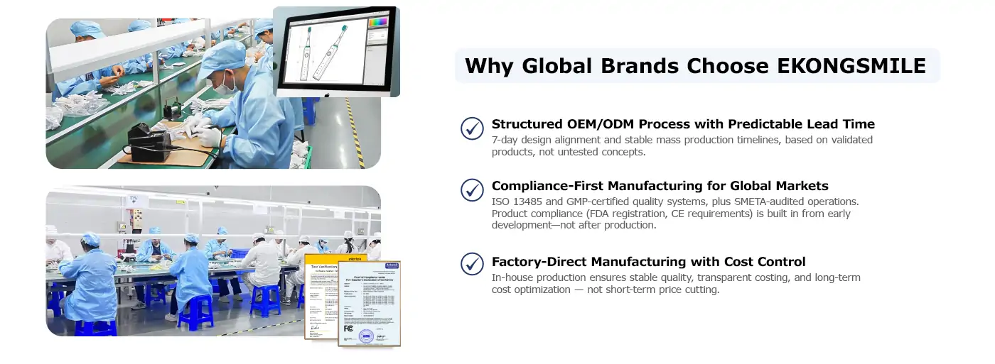 Yes. We are an FDA-registered and CE-compliant oral care manufacturer, operating under ISO 13485 and GMP certified manufacturing systems to support the US, European, and international markets.